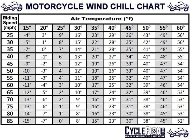 Motorcycle Wind Chill Chart Share this: Email a link to a friend (Opens in new window) Email Print (Opens in new window) Print Like Loading...