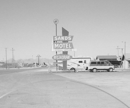 Van Horn … where just 30 minutes after my warm and sunny midday arrival, the temperature dropped almost 30 degrees as a massive red sandstorm blew in, consuming the sky, blocking the sun and delaying my chance to chow down at Chuy’s, where aerophobic sports announcer John Madden’s bus always stops for a “#21”; and