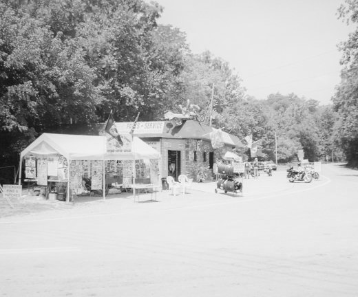 At Punkin Center, we stopped and walked across the road to buy a couple of “I Rode Mine” patches from Brett (if I remember his name correctly) and have him sew them on our vests. After sewing on mine, he scanned the other patches for a moment, and then told me the needlework on some of them looked familiar. Well as it turns out, Brett was once the apprentice of “Mary”, the takes-no-gruff grandma-lookin’ lady who sews on my “Sturgis” patch every year in her tent on Main not far from H-D! Small world, huh?